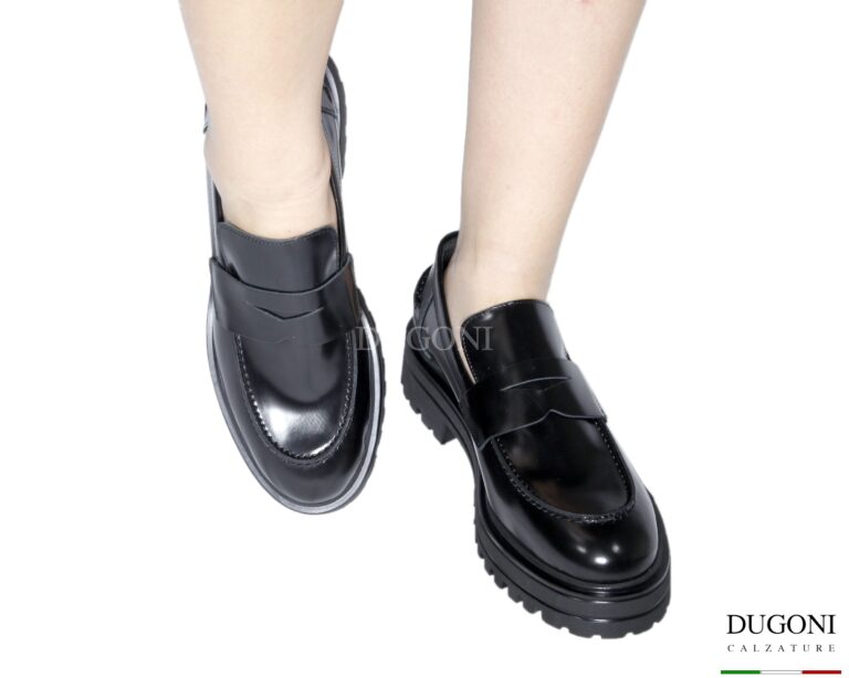Mocassino carrarmato Ex-L in pelle nero D1472