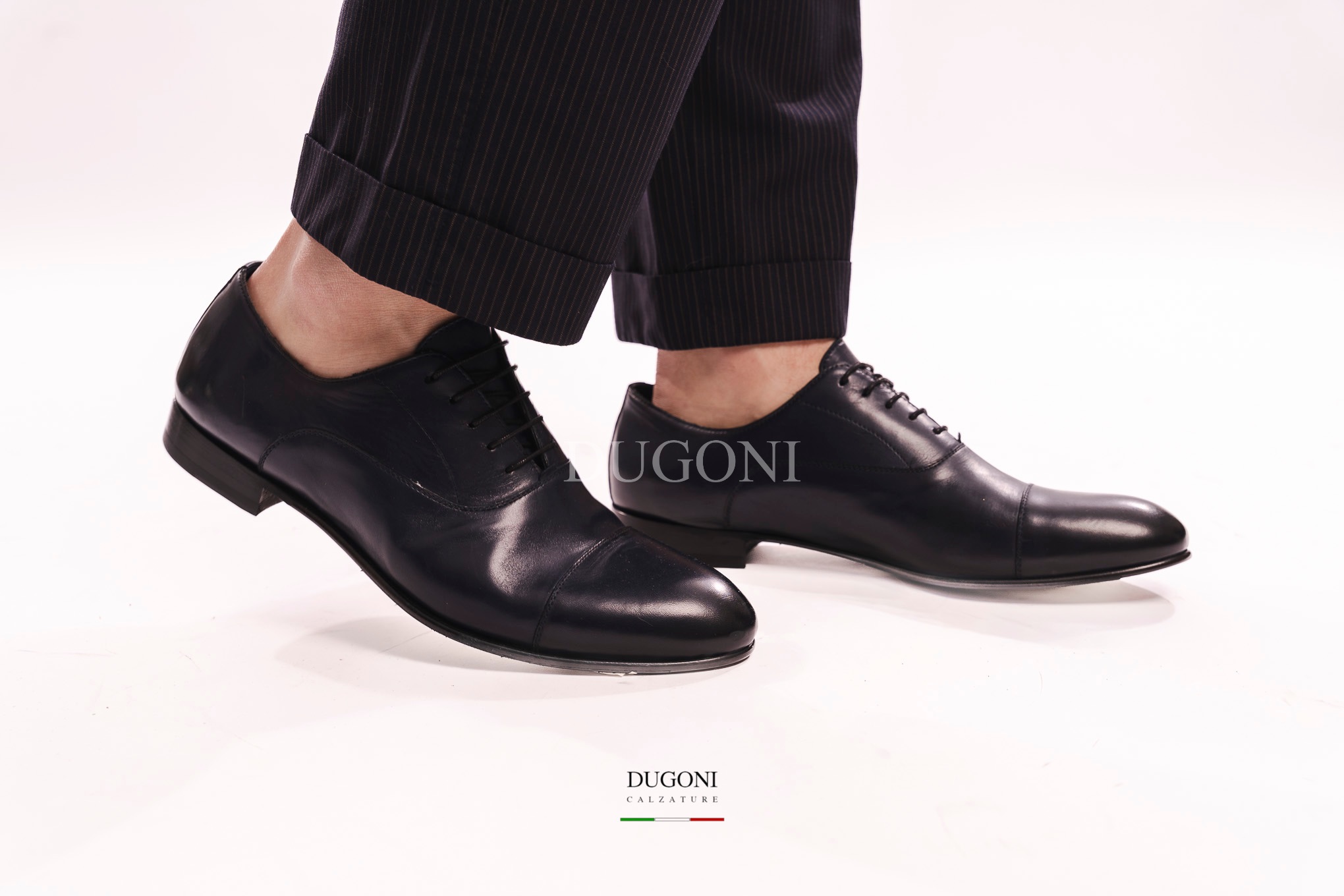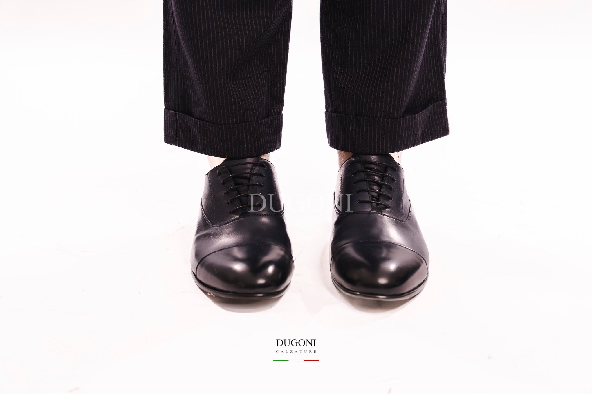 Oxford calibrata a sacchetto, in pelle nera. La forma calibrata a sacchetto dona alla calzatura qualità eccellenti in comodità . Lacci a 5 fori, cuciture in tinta. Suola in cuoio cucita e mezza gomma VIBRAM . Fodera interna in pelle in tinta .