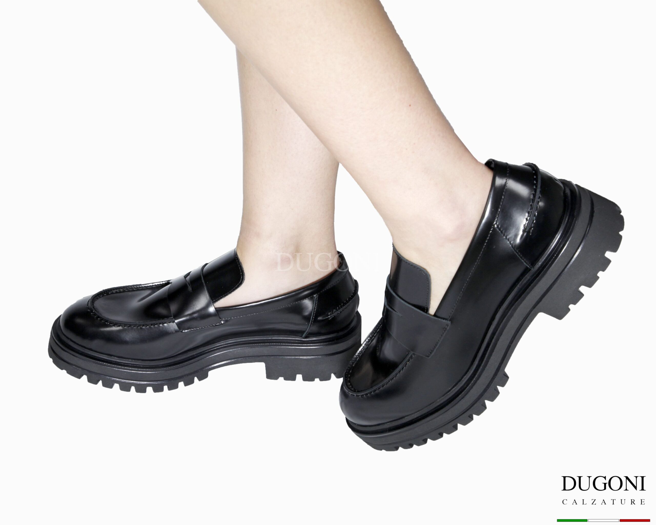 Mocassino in pelle abrasivata nera . Suola in gomma Wellf-light